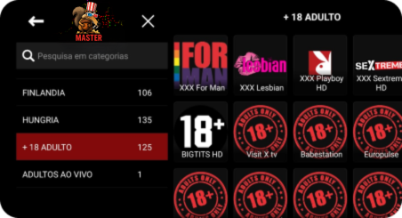 Toda a lista de canais adultos protegido com senha para bloqueio e segurança das crianças.